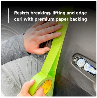Built for Automotive Aftermarket Work Through and Through: Auto body professionals will recognize the familiar green color of our Scotch® Performance Green Masking Tape 233+. The distinctive green paper backing helps improve visibility for more accurate edge alignment and is highly conformable, it resists breaking even around complex contours of a vehicle, making for fast application and eliminating the need to apply additional tape. But the backing is only one part of our tape design, balanced specifically for superior performance in auto body paint repair and maintenance. The specially formulated adhesive bonds instantly, reducing rework on a variety of surfaces including EPDM. The adhesive resists water and chemicals, making it ideal for use with water or solvent based paint systems with no bleed-through, edge curl or lifting. A primer layer anchors the adhesive to the backing, virtually eliminating transfer to the vehicle surface. The tape removes clean without slivering, which can reduce labor costs. 3M's tape also resists temperatures up to 250°F (121° C) for up to 30 minutes, making it suitable for longer baking cycles. All of this is built into a very low-profile tape which won't leave high edges that require extra buffing or rework. Special Backsize Treatment for Outstanding Results: 3M adds a release coating to the backing of Scotch® Performance Green Masking Tape 233+ that gives it superior control during unwinding. This means that the tape is much less likely to wrinkle or pull away from the masking paper when used with a paper apron masker, even if the apron is pulled aggressively. This makes for a more accurate mask and eliminates paint blow-by. Packaged to Help Make Your Shop More Profitable: Even the way we package our Scotch® Performance Green Masking Tape 233+ helps save money and add value to auto body operations. Each 55-meter roll contains about 5 more inches of tape than lower-priced brands. Since the tape resists slivering, there's no need for the tab at the start of the roll which makes the tape usable from the very start. And we include a coating on the inner core of the roll that releases the last wrap – commonly about 10 inches of tape that is unusable on lower-priced brands. The result is about 15 inches more tape per roll, or about 60 more feet of usable tape per case. Decades of Science in Every Roll: The consistently sharp, uniform paint lines you get from Scotch® Performance Masking Tape 233+ are the result of scientific development that began when 3M invented masking tape in 1925. Every layer of our tape- the backing, the primer, the adhesive and the backing saturant; has been carefully designed and developed for superior performance in auto body aftermarket applications.