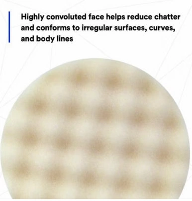 3M™ Foam Compounding Pad is a great, fast-cutting foam pad designed for refining and removing sanding scratches and swirls. The convolute foam face conforms to curves and body lines to reduce chatter for improved finishes. It also holds compound to help reduce slinging and the hook-and-loop attachment makes for fast, easy attachment to rotary polishers.