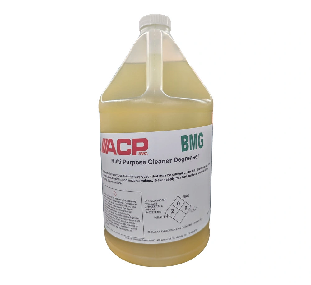 BMG Multi Purpose Cleaner is a multipurpose cleaner that may be cut up to 1:10 for cleaning multiple surfaces. Used at stronger strengths, it may be used as a wheel cleaner.