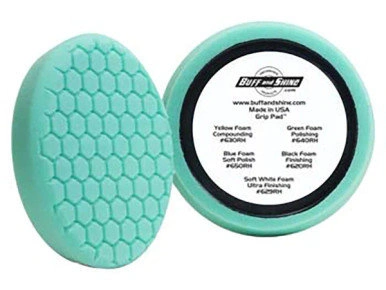 Our patent pending "Ring Pad" system does all this and more. Along with the centering benefit we have shaped the front of the pad with a hex design and engineered a flexible backing plate that will accept air, rotary and random orbit buffers; the hex face will help dissipate polish or compounds evenly, minimizing grabbing and reducing heat while the backing plate helps reduce pad stiffness. Each of our colored foam buffs has a measured cell structure that provides a different level of cutting or finishing. Used in conjunction with your favorite buffing medium, this is the ultimate buffing solution.