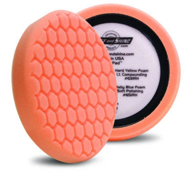 Our patent pending "Ring Pad" system does all this and more. Along with the centering benefit we have shaped the front of the pad with a hex design and engineered a flexible backing plate that will accept air, rotary and random orbit buffers; the hex face will help dissipate polish or compounds evenly, minimizing grabbing and reducing heat while the backing plate helps reduce pad stiffness. Each of our colored foam buffs has a measured cell structure that provides a different level of cutting or finishing. Used in conjunction with your favorite buffing medium, this is the ultimate buffing solution.
