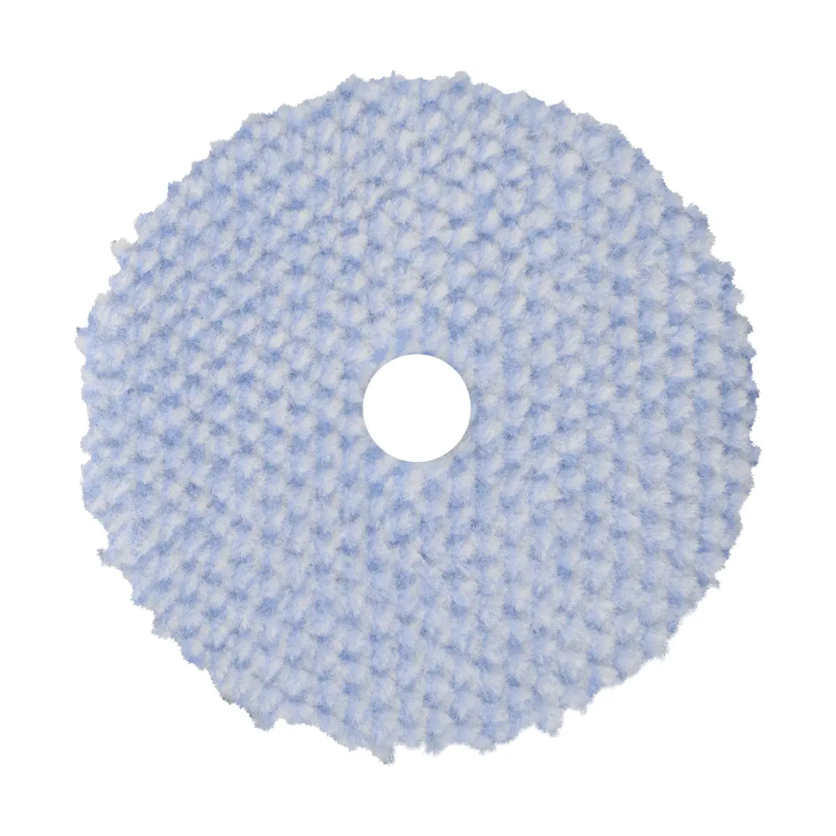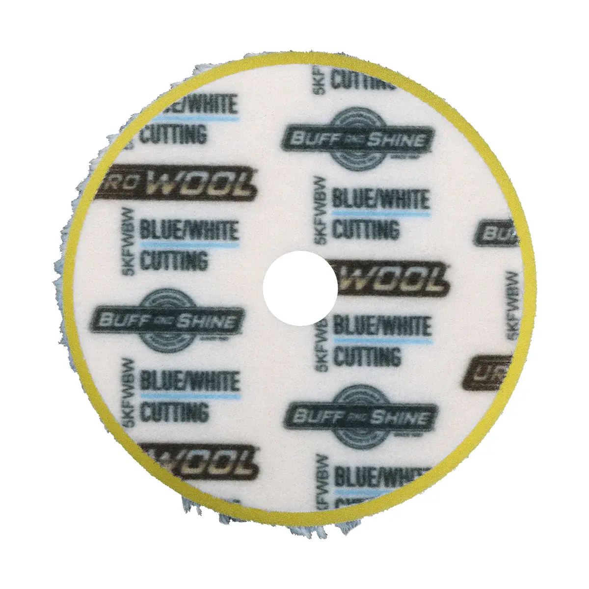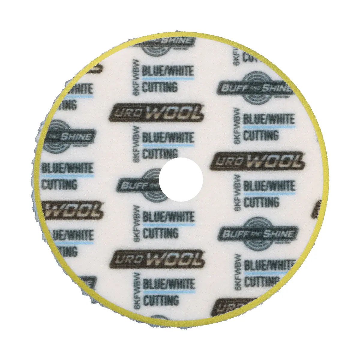 The KFWBW pad blends blue and white knitted wool with a blue foam interface for controlled cutting performance. More aggressive than the KFWY, it tackles heavier defects while still managing heat and panel contact. The beveled edge adds safety and precision around contours. (Blue/White Wool + Foam, Cutting/Edge Bevel — 0.25" pile)