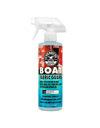 Boat Fabric Guard by Chemical Guys is a powerful, water-based fabric protector designed to keep your boat’s upholstery, canvas, and marine fabrics looking like new. This advanced formula creates a durable, invisible barrier that repels water, dirt, and stains, while allowing fabrics to breathe. Ideal for bimini tops, seat cushions, and covers, Boat Fabric Guard shields against UV rays, mold, and mildew, helping to preserve the integrity and appearance of your boat's fabrics. Keep your marine fabrics protected from the elements with the long-lasting performance of Boat Fabric Guard.
