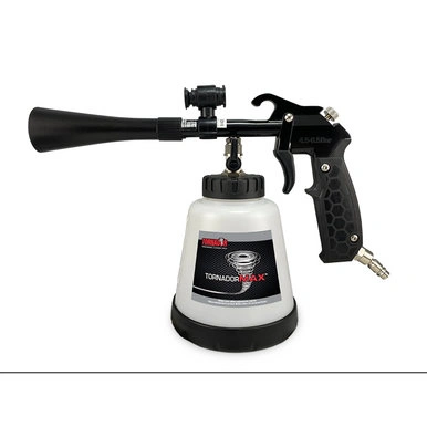 Tornadorreg; has completely changed the professional detailing industry with the new the TornadorMaxreg;! You will see all the benefits of the Z-020 Tornadorreg; Black with newly engineered and upgraded features. The rotate set is now equipped with a patented spring technology, which increases the torque and intensifies the cleaning power. Thanks to the spring technology the cleaning time is reduced and efficiency is greatly increased. The newly designed ergonomic handle and trigger of the TornadorMaxreg; provides users more control and comfort. This progressive design allows for individual customization through easily replaceable color handles and trigger grips. The TornadorMaxreg; also has a built-in air regulator allowing for precise control of the air pressure along with adding a swivel air inlet for flexibility. An Anti-Slip mat on the jar will allow the TornadorMaxreg; to stand flat even when connected to an air hose which results in minimized spills and falls. Finally, the TornadorMaxreg; comes with a LED tactical light to illuminate dark areas without having to incorporate bulky lights. The TornadorMaxreg; is the newest in the family of must have detailing tools!