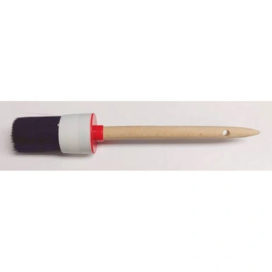 Black bristle nylon round detail brush with wood handle.
