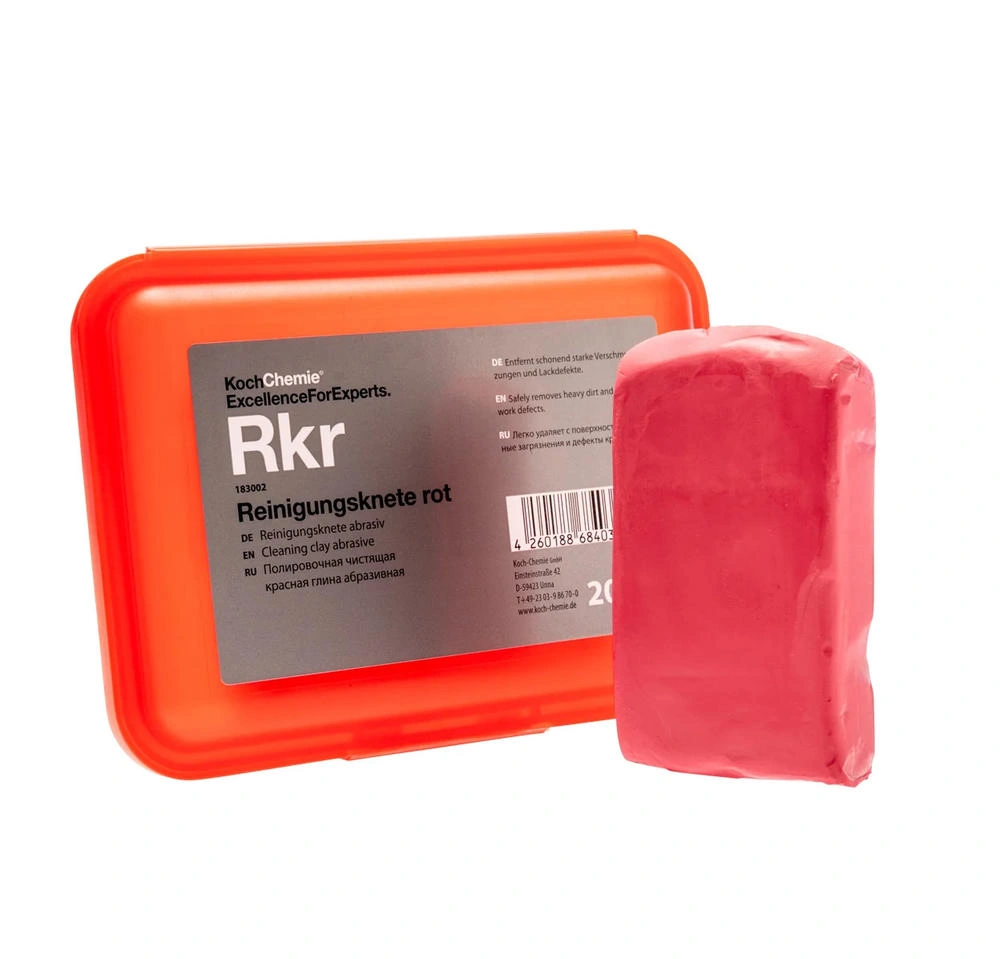 The Rkr Red Abrasive Clay Bar (200g) is a professional-quality medium-grade clay bar designed to safely remove bonded contaminants from automotive paint, glass, and metal surfaces. Ideal for use before polishing, waxing, or applying ceramic coatings, this clay bar effectively eliminates overspray, brake dust, tar, sap, and road grime—restoring a smooth, clean finish.