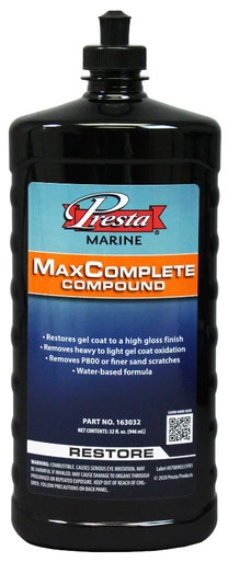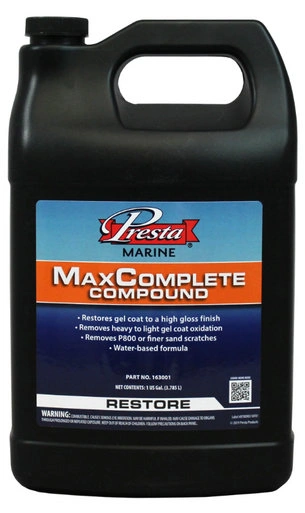MaxComplete Compound is a next-generation cutting compound, designed for marine applications. It provides aggressive cutting action that removes P800 and finer sand scratches, as well as heavy oxidation. Used this aggressive compound on fiberglass, gel coat, and painted surfaces for a flawless, swirl-free finish.