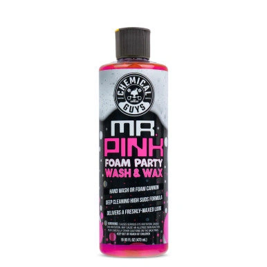 Mr. Pink Foam Party delivers billions of powerful scrubbing bubbles for superior cleaning and complete coverage. Its pH-neutral formula gently lifts dirt and grime without leaving residue or compromising existing coatings. Enhanced with wax polymers, it not only cleans but also leaves behind a stunning protective shine, ensuring your vehicle looks spotless and glossy after every