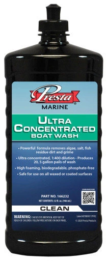 Ultra Concentrated Boat Wash is a powerful, phosphate-free, and biodegradable cleaner that removes algae, salt, fish residue, dirt, and grime from marine surfaces. This environmentally friendly boat wash can be safely used in a marina.