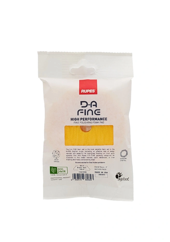 The DA FINE foam pad is the most versatile foam pad in the RUPES BigFoot range, delivering an effective rate of defect removal and capability for high-gloss finishing on most paint systems. Pair with RUPES DA-FINE polishing compound for moderate to fine defect removal, paint refinement, or final finishing after heavy compounding steps.
