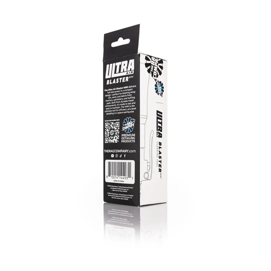 The ULTRA Air Blaster Mini delivers the same power and performance as its bigger brother, the ULTRA Air Blaster, but with a smaller footprint. Use it to unleash a high-velocity vortex of air that blasts dirt, sand, and debris from carpets, upholstery, plastics, and even buffing pads.